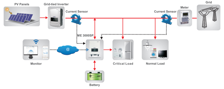 Mô hình đấu nối Inverter hòa lưới có dự trữ Sofar Solar 3KW